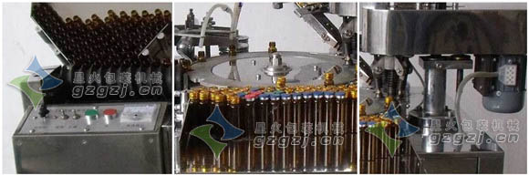 10-20型口服液瓶灌裝旋蓋機設備是星火韓城旋蓋機公司研發(fā)將灌液、加鋁蓋,軋口功能匯于一機的設備,結(jié)構(gòu)緊湊生產(chǎn)效率高,適應各企業(yè)的生產(chǎn)使用要求。采用螺旋桿將瓶垂直送入轉(zhuǎn)盤,結(jié)構(gòu)合理,運轉(zhuǎn)平穩(wěn)。灌液分二次灌裝(裝量可調(diào))避免液體泡沫溢出瓶口。并裝有缺瓶止灌裝置,以免料液損耗,污染機器及影響機器的正常運行。