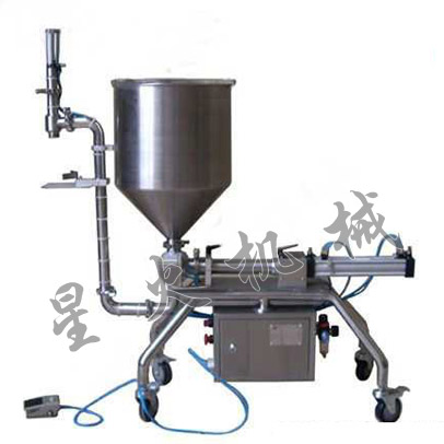 - 3、該機(jī)為半自動(dòng)活塞式灌裝機(jī),可灌裝顆粒漿狀流體物料。
