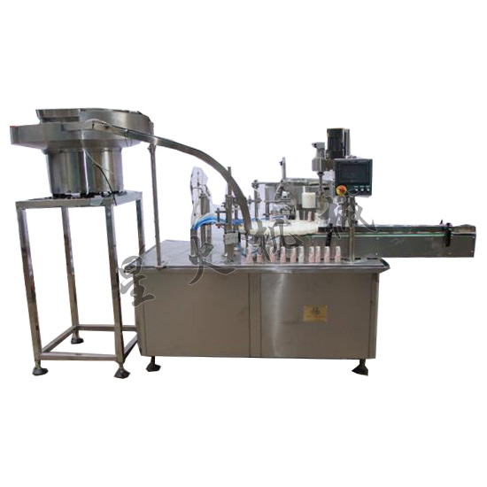 這款振蕩理瓶灌裝旋蓋一體機-口服液灌裝旋蓋一體機專門針對小劑量的藥液、口服液、飲料、保健品、香水等液體灌裝設(shè)計的 、尤其適用于1ml-10ml容量的灌裝 。采用單頭蠕動泵灌裝,316L不銹鋼材料;工作臺面以不銹鋼材料防護(hù),整機符合GMP要求。采用振蕩式理瓶、圓盤定位灌裝,有自動對口裝置,自動上蓋旋蓋,定量灌裝,計量準(zhǔn)確。特別適用于中小批量的生產(chǎn)可選購防護(hù)罩。